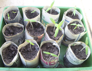 And it's not just the potatoes that have responded well to the recent warm weather. My first sowing of tomatoes has been potted on and the young plants are looking very healthy and almost ready for their final positions. Trouble is that space is currently occupied by the spuds...oh, what's a poor boy to do?